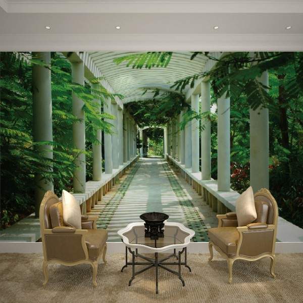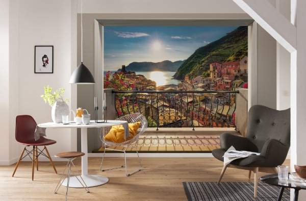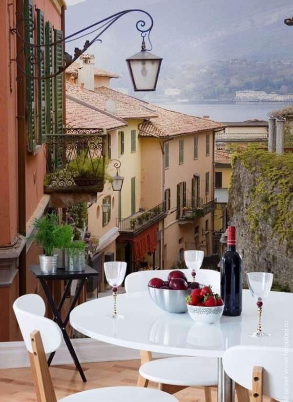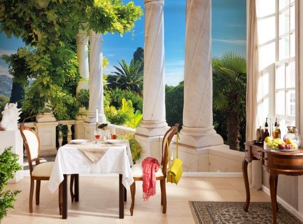 Здесь идеальны расширяющие пространство панорамные фотообои. Они «стирают» стены, перенося вас в уютные дворики, садики или на французские балкончики с живописными видами.