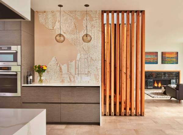 Они способны изящно подчеркнуть зонирование кухонного пространства.