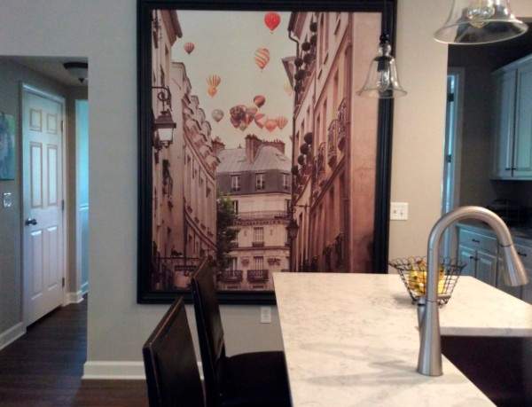 Их можно удачно сочетать с рельефными элементами декора. Интересный вариант — превратить часть стены в живописное полотно, оформленное настоящей рамой. А как оживет интерьер кухни, если создать панно с декоративным камнем и фотообоями, изображающими старинные городские улицы!