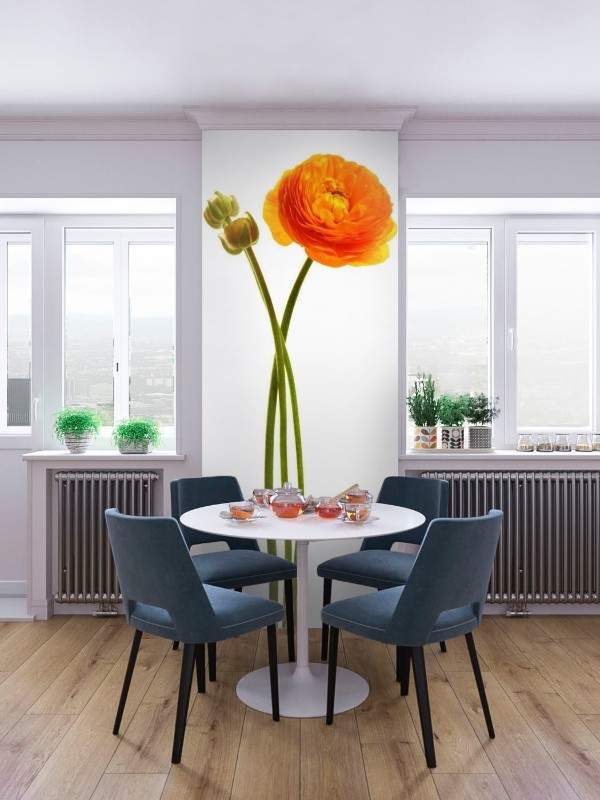 При выборе фотопринта непременно надо считаться с размером помещения. В просторной кухне эффектно будет выглядеть макро-рисунок. К тому же, он доставит вам сказочное удовольствие почувствовать себя настоящей Дюймовочкой.