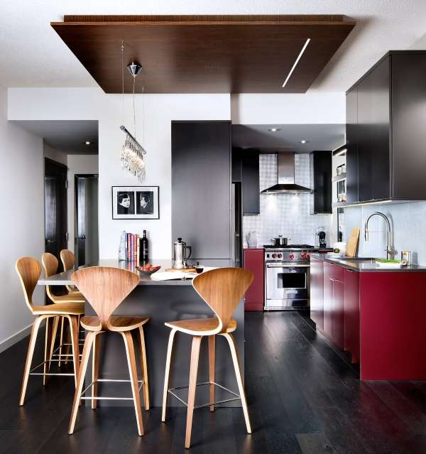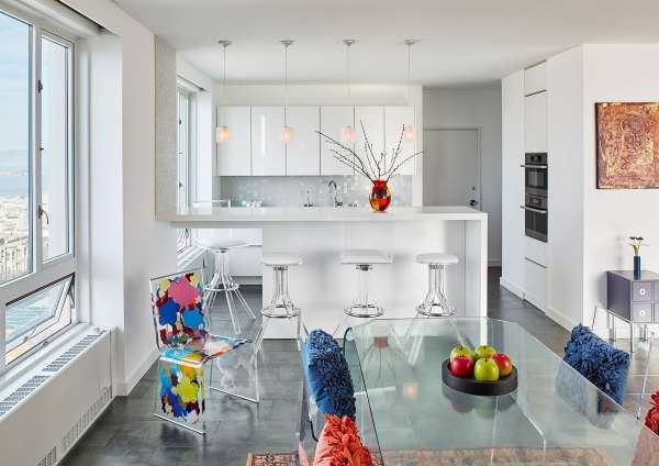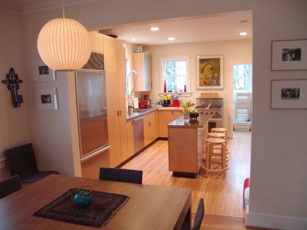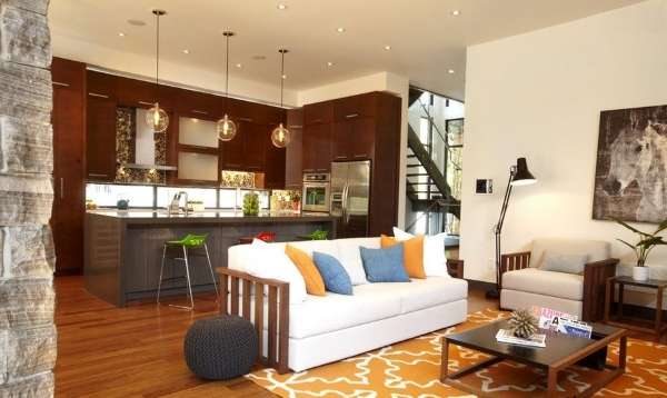 Изящный интерьер кухни студии в частном доме с фото примерами