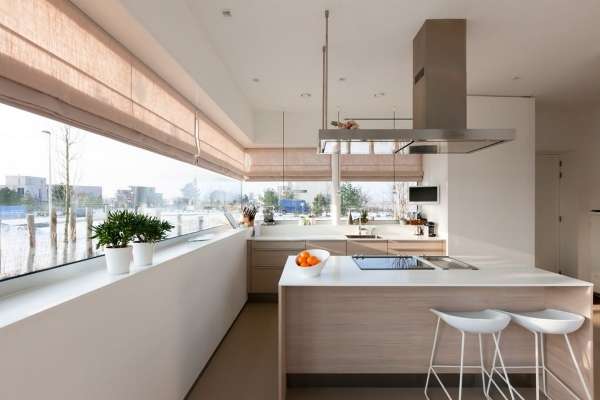 Неотъемлемым, очень важным и практически обязательным элементом дизайна кухни выступает окно. В интерьере частного дома очень изящно смотрятся панорамные окна — наслаждение можно черпать килограммами, находясь в такой комнате.