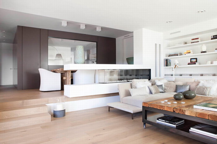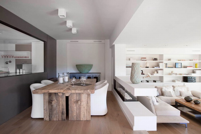 Простой, современный интерьер с преобладанием белого, чуть серого цвета.