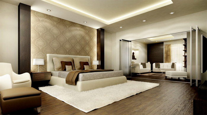 Интерьер спальни в частном доме, зависит от размеров самой комнаты. Если она небольшая, то в дизайне будут преобладать светлые тона, а меблировка должна включать только самую необходимую мебель. Для визуального расширения пространства можно установить большие окна, а также повесить зеркала на стены. Что касается стилистического оформления спальни, то оно может быть выполнено в любом стиле, но наиболее распространённым является минимализм. Этот стиль отлично подходит как для маленьких, так и для больших спален.