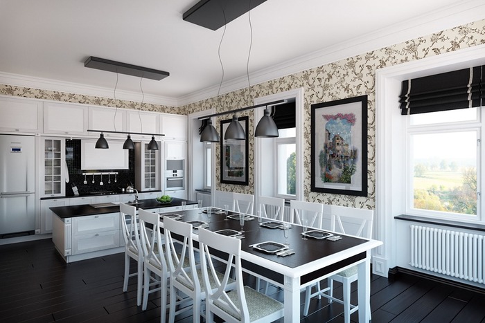 Современным решением является объединение столовой с кухней или гостиной. У такого решения масса плюсов, главный из которых это значительное расширение пространства. Разделение функциональных зон кухни и столовой может выполняться с помощью разных отделочных материалов, элементов мебели, например барной стойкой, или с помощью разного освещения. Интерьер столовой требует грамотной проработки, так как он должен быть красивым и в то же время комфортным для приёма пищи всеми членами семьи. Главным элементом любой столовой является обеденный стол, но перед его покупкой необходимо определиться со стилем помещения.