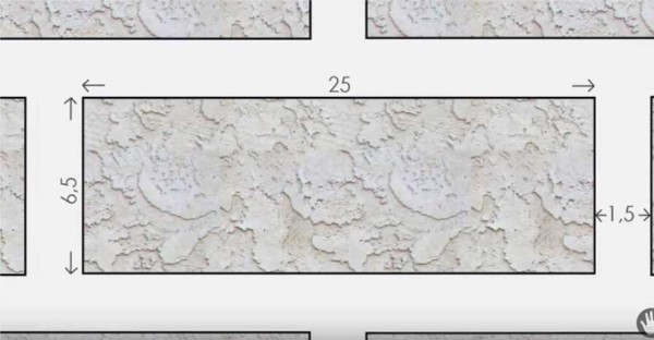 Что делать, если кирпичных стен не наблюдается, а очень хочется сделать такой рельеф? Есть несколько способов имитации разной степени сложности, но начинается все с разметки. Стандартная кирпичная кладка имеет размеры 25*6,5 см, шов 1-1,5 см. Вот такую разметку и наносим на стену.