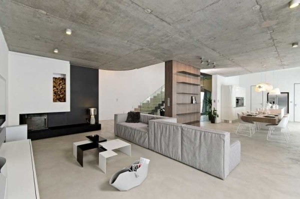 Такого же цвета — серого — можно сделать заливные полы. Некоторые даже мебель и столешницы делают из бетона. В стиль попадают на 100%, но насколько удобна такая мебель в использовании — вопрос.