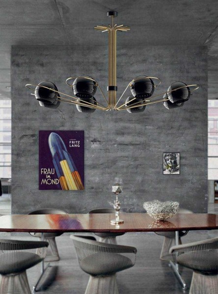 Если такие идеи ну никак «не греют» допускается использование люстр в стиле минимализм или хай-тек. Они неплохо гармонируют с необработанными стенами и потолком. Но цветовое решение, да и используемые материалы должны перекликаться с теми, что есть в интерьере.