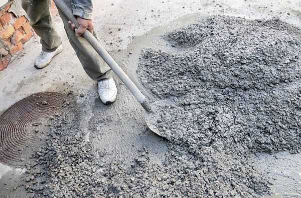 • В первом варианте есть возможность, что при ручном замесе на дне, возле стен емкости останется неразмешанный состав, что приведет к снижению прочности бетона. Выход — хорошо и тщательно все перемешивать. Но слишком много времени тратить на это нельзя: раствор начнет схватываться.