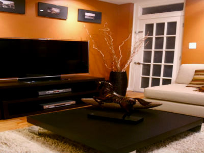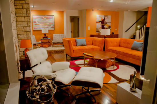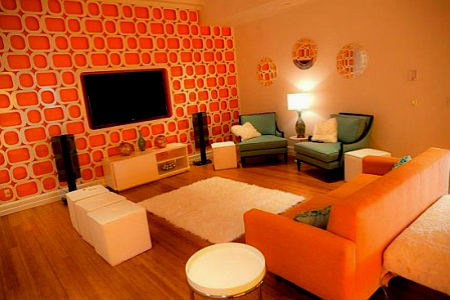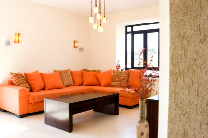 Отделка оранжевой гостиной.