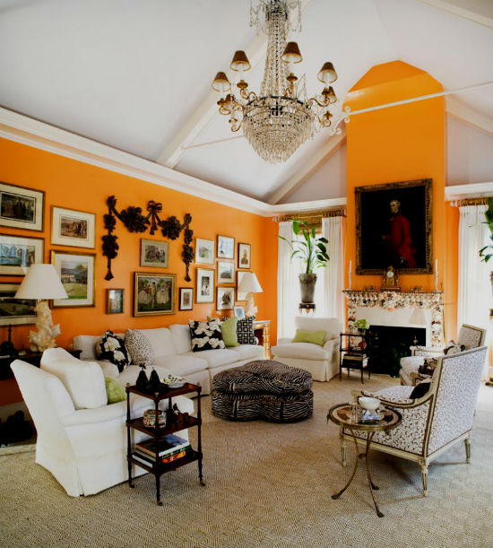 - Еще примеры оранжевых гостиных комнат: