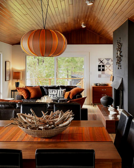 Еще примеры оранжевых гостиных комнат:
