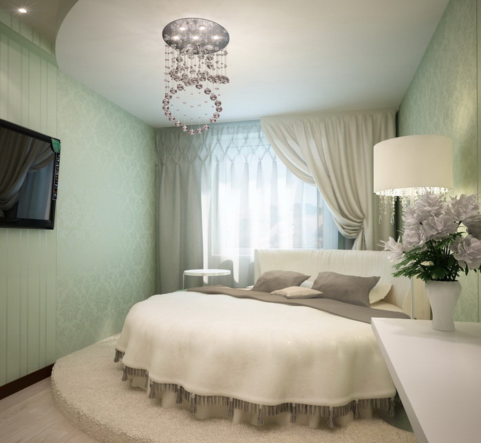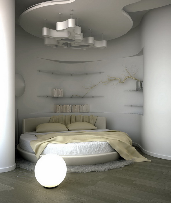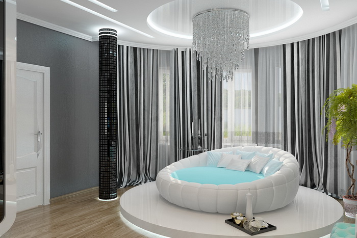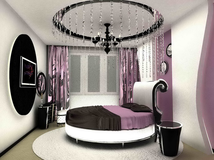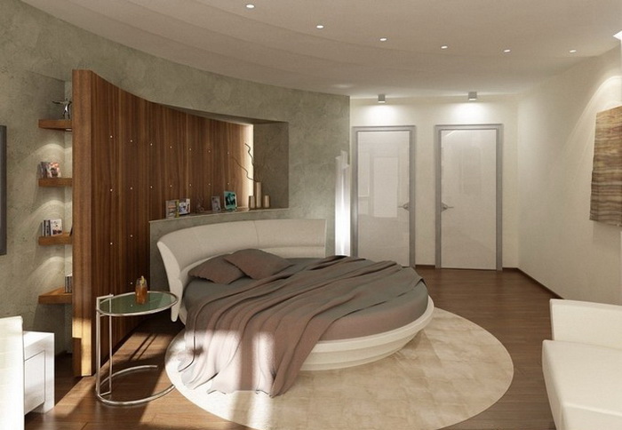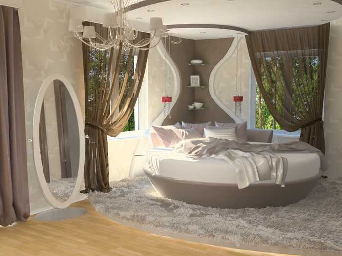 Очень часто, все сильно озабочены, соблюдением стиля в дизайне интерьера и совершенно не думают о чем-то новом. Нужно не бояться экспериментировать. Лучшим вариантом в подобной ситуации может стать спальня с круглой кроватью. Она станет изюминкой всей Вашей квартиры.