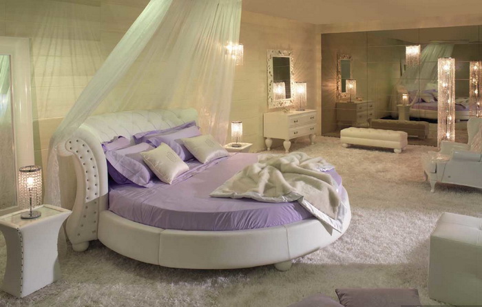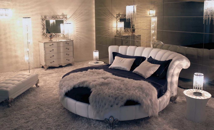 Традиционная форма наших кроватей — прямоугольник. Но представьте, какой восхитительный внешний вид может иметь Ваша спальня, если в ее интерьере будет присутствовать круглая кровать. Округлая форма кровати, отличный вариант для просторных спален, ведь места для нее потребуется больше, чем для прямоугольной. Стоящая посредине комнаты круглая кровать, становится центром интерьера спальни, акцентируя на себе внимание.
