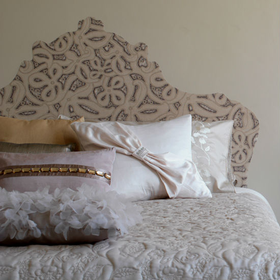 ► Не стоит засматриваться на излишне современные модели кроватей, лучше пусть оформление ложа будет в меру скромным, выполненным в светлой оттеночной гамме. Приветствуется любая пастельная гамма, допустим, розовая, голубая, фиолетовая, бежевая, зеленая, а также торжественный белый цвет. Кровать может быть изготовлена из дерева, и быть украшена скромной резьбой, а также может представлять металлический каркас с витиеватыми коваными мотивами. Также нельзя сбрасывать со счетов текстильные, мягкие изголовья, которые часто декорируются цветочными принтами.