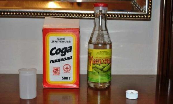 • Способ для горизонтальных поверхностей — насыпать соды, залить уксусом, подождать прока закончится реакция и смыть водой.