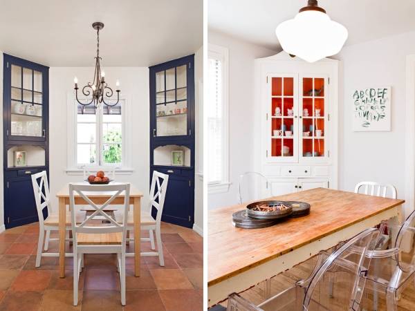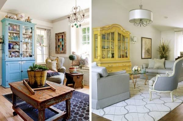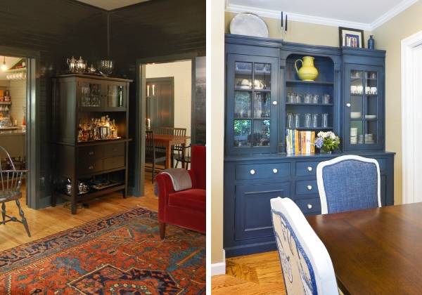 Помните, что перед нанесением любой отделки, будь то краска, лак или прочие покрытия, поверхность буфета важно тщательно отшлифовать наждачкой, вымыть с мылом и загрунтовать. Подробные инструкции по переделке старой мебели вы найдете в статье Реставрация советской мебели своими руками. А ниже мы приведём красивые фото интерьеров, главными украшениями которых являются старинные буфеты после реставрации.