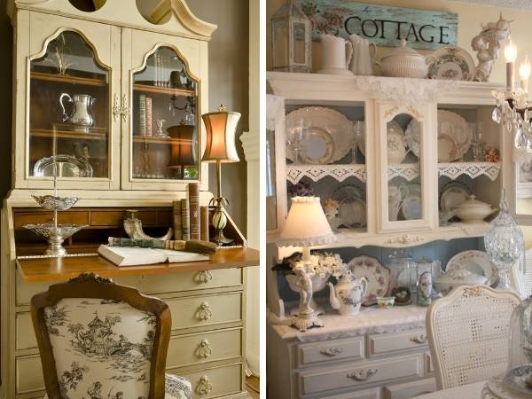 4. При реставрации придать буфету эффект старины. Иначе в чем смысл иметь в доме старинный буфет, если он будет выглядеть как новенький? Добиться винтажного вида в духе стиля прованс можно с помощью искусственных потертостей, которые создаются своими руками при помощи наждачки, кракелюрного лака или декупажа.
