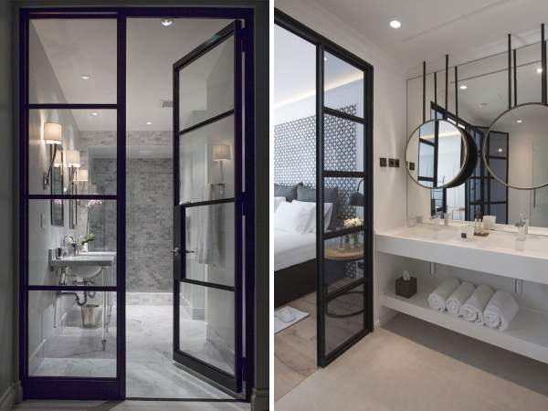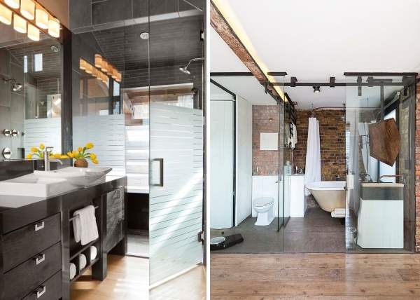 Оригинальные стеклянные двери в ванную комнату — 5 фото