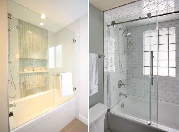 Отметим, что во время банных процедур всегда нужно быть внимательным, чтобы не поскользнуться и не упасть. Хоть дверь и сделана из закаленного стекла, но всякое может случиться, и при сильном ударе вы можете получить дополнительную травму. Ниже мы предлагаем вам просмотреть на 10 фото различных вариантов стеклянных дверей для ванны и душа.