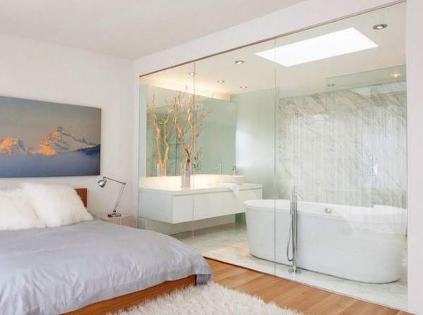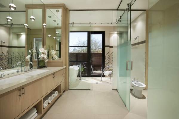 - Двери из стекла пропускают дополнительный свет в ванную комнату;