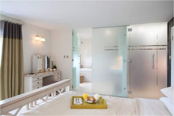 К положительным сторонам стеклянных дверей для ванной комнаты можно отнести: