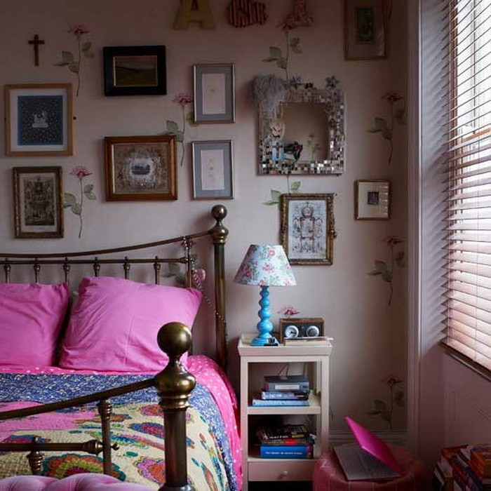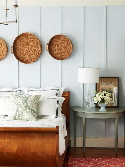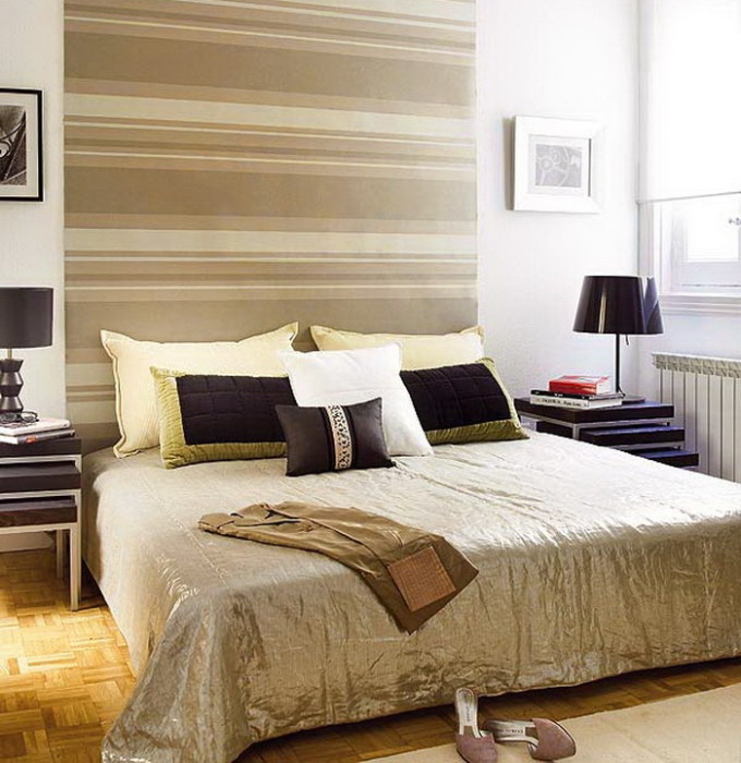 Можно просто выделить одну стену за изголовьем кровати красивыми необычными обоями.