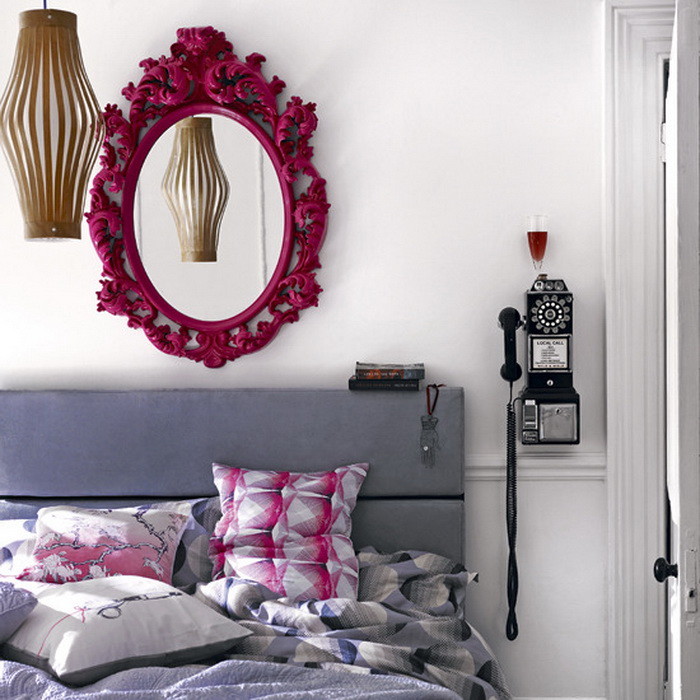 Над кроватью можно повесить или поставить зеркало.