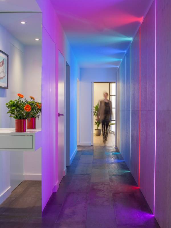 - сочетание стеновых панелей и декоративной подсветки;