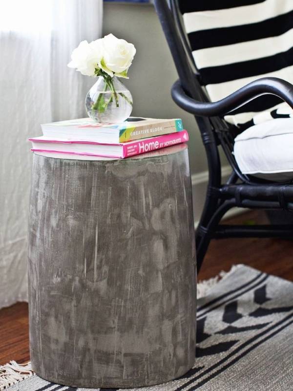 Как вы могли убедиться выше, самое необходимое для создания бетонного декора своими руками — это форма, в которую заливается цементный раствор. При изготовлении небольших интерьерных аксессуаров в качестве этой формы могут выступить пластиковые бутылки, стаканы и контейнеры, а также плотный картон — материалы, которые легко удалить с поверхности после застывания бетона. Но чтобы изготовить такой габаритный предмет, как стол, от вас могут потребоваться более серьезные усилия. Однако результат стоит того. Самодельные бетонные столики могут иметь такой вид и функции, которые нужны именно вам.