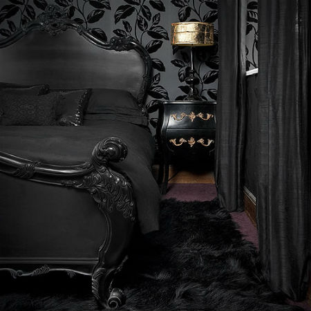 Покрывала на кровать, а также шторы на окна и наволочки для подушек, следует приобрести из атласа, шелка или бархата. Дополнительно о гламурной спальне можно почитать здесь.