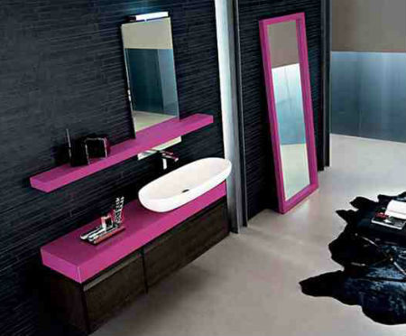 Если же помещение довольно крупное по площади, то вполне можно использовать более темные оттенки. В таком случае, стены можно покрыть темной, насыщенного цвета плиткой (серой, черной, розовой или красной).