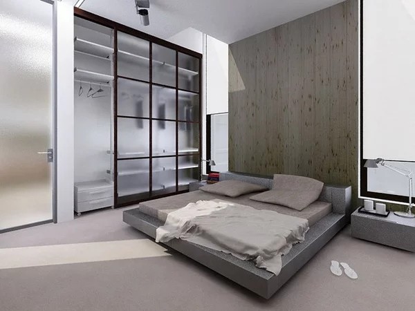 Как видите, во всех дизайнах минималистических спален главным акцентом является кровать. Спальное место обычно низкое, четкой геометрической формы, с простым изголовьем или без него.