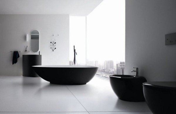 При оформлении ванной в минималистическом стиле нужно выбрать основной цвет дизайна. Это может быть серый, пепельный, оттенки черного. И помните: минимум вещей и максимум удобства.