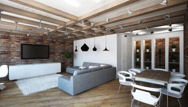 • Интерьеры в стиле лофт — это отдельная история. Минимализм в сочетании с брутальной прямолинейностью лофтового стиля — тандем очень интересный, понятный не каждому. Но, тем не менее, сложно не признать его притягательную энергетику. Вот пример. Согласитесь, есть в этом что-то мегамощное.