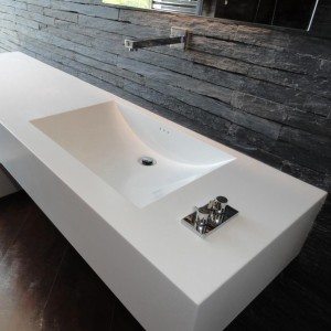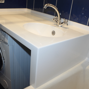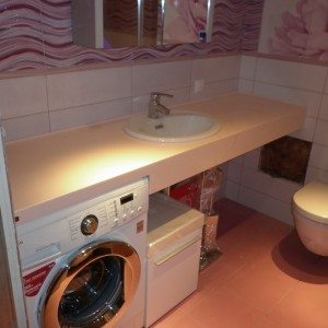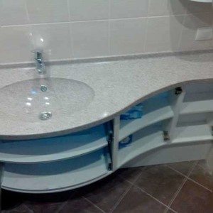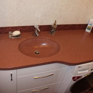 Специальные акриловые столешницы для ванной не потребуют дополнительной облицовки и сэкономят время, однако их общая себестоимость будет несколько выше, чем при самостоятельном изготовлении.