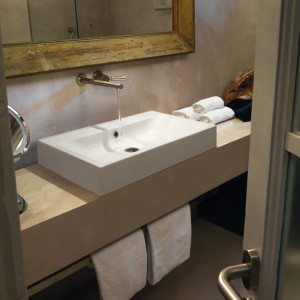 Одним из центров внимания, помимо ванны, здесь, несомненно, является умывальник. Касательно его выбора, то это может быть как классический белоснежный вариант с фаянсом или фарфором, так и новомодные модели из стекла, натурального или искусственного камня и металлов.