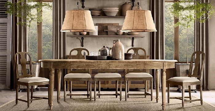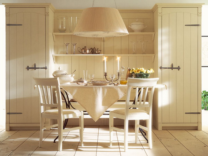 Мебель спокойного дизайна, много используется натурального дерева, иногда дерево слегка выбелено, практически отсутствуют яркие детали.