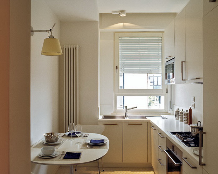 Кухонная мебель и техника растворилась в интерьере и не привлекает внимание.