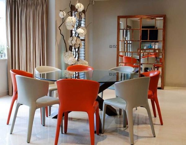 Круглый стеклянный стол на кухню — отличный вариант для просторных помещений
