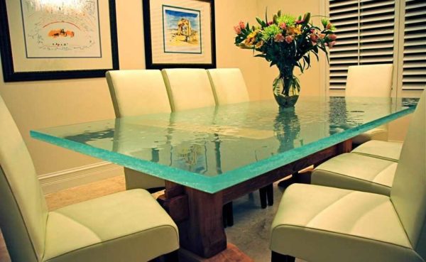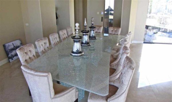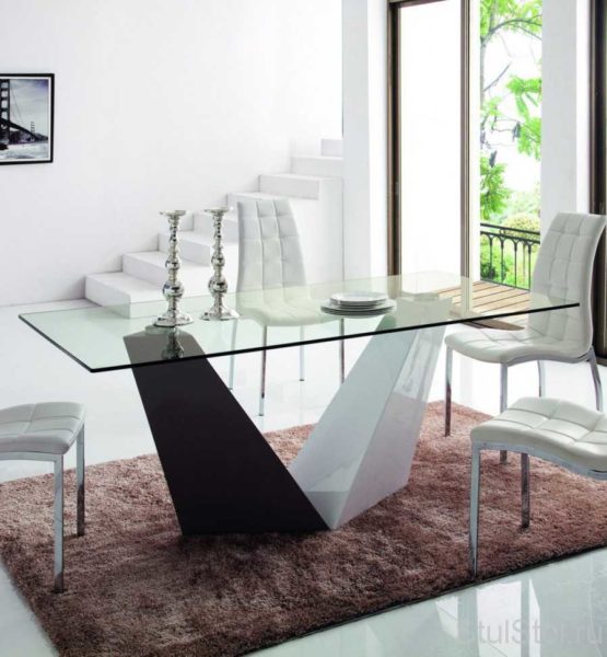 Несколько слов отдельно по поводу прочности и надежности. Если вы боитесь, что стеклянный обеденный стол может треснуть или разбиться, не беспокойтесь. Их изготавливают из специального ударопрочного стекла (каленого или ламинированного типа триплекс), которое разбивается только от ударов кувалды. Так что кастрюлей, тарелкой, чашкой вы его не разобьете. Вот разбить чашку или тарелку, слишком резко ее поставив, можно. Но стол при этом не пострадает.