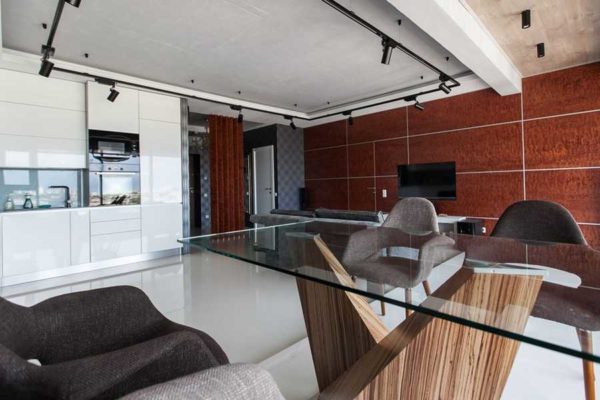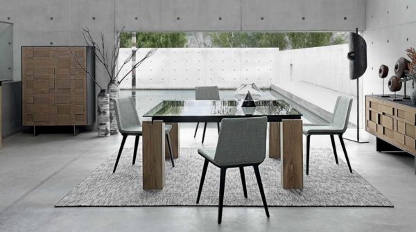 Стекло в сочетании с благородным деревом смотрится не так «холодно»