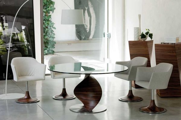 В стиле модерн хорошо будут смотреться многие стеклянные столы