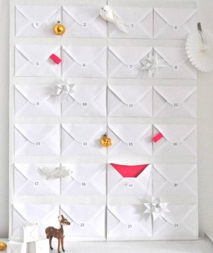 Дожидаться нового года будет намного приятней, если каждый день ожидания вознаграждать себя небольшим подарком. Представляем вам на выбор: минималистский календарь из офисных конвертов с ярко-розовой подкладкой или экстраординарную праздничную идею со старой оконной решеткой.