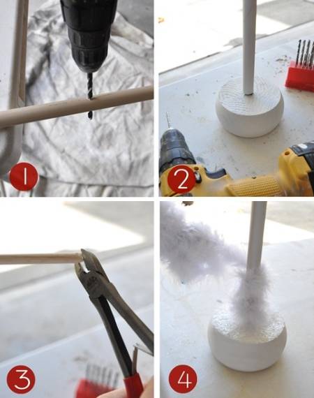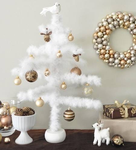Пожертвуйте своим старым боа, добавьте также несколько нарядных металлических деталей и создайте потрясающий новогодний декор в стиле глэм.