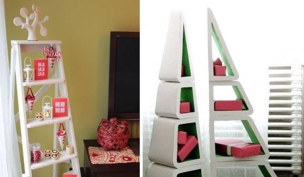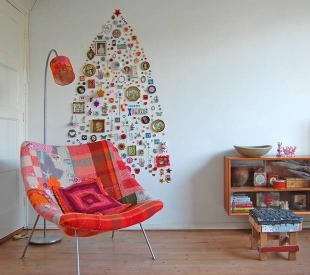 Пусть стены могут ограничивать пространство, но только не ваш креатив! Милые безделушки, остатки прошлогоднего декора, старая мебель, даже небольшая стремянка — практически все, что угодно, может послужить в качестве главного новогоднего украшения!