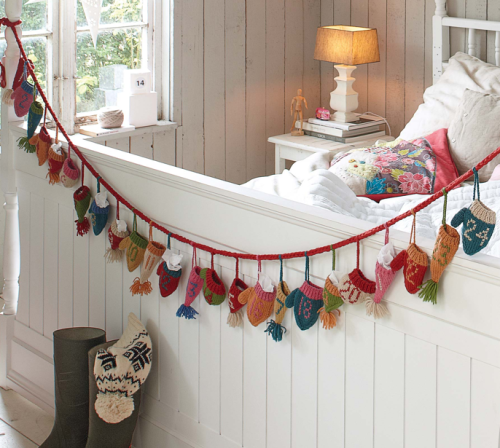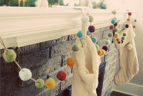 Маленькие клубки ниток, помпоны со старой одежды, детские носочки, мягкие игрушки и прочее в сочетании со всевозможными лентами, поясами, галстуками и другими связывающими элементами — все это может отлично послужить вам для создания самой удивительной гирлянды на свете. Украсьте ею периметр комнаты, камин, переднюю часть кровать или что-то другое — вот уж где действительно может разгуляться ваша фантазия!!!