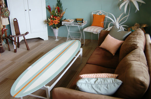 В доме, предназначенном для постоянного проживания, будет недостаточно стандартного скромного комплекта мебели, в частности одного дивана, сюда также стоит подобрать парочку кресел, компактный кофейный столик, если речь идет о гостиной. Диван может быть обит текстилем, с каким-то характерным принтом – полосочкой, изображениями ракушек, но также вполне подойдет натуральный одноцветный лен. Не менее интересно смотрится плетеная мебель, эта та самая мебель, которая предназначена для уличного использования, ну а Вы можете проявить чуточку креатива и установить ее в доме. В спальне можно поставить кровать с деревянным дощатым изголовьем или плетеным из ротанга. Правда, в случае с ротангом нужно быть готовым к тому, что между плетением будет скапливаться пыль, которую, впрочем, легко можно удалить при помощи специальной метелочки.