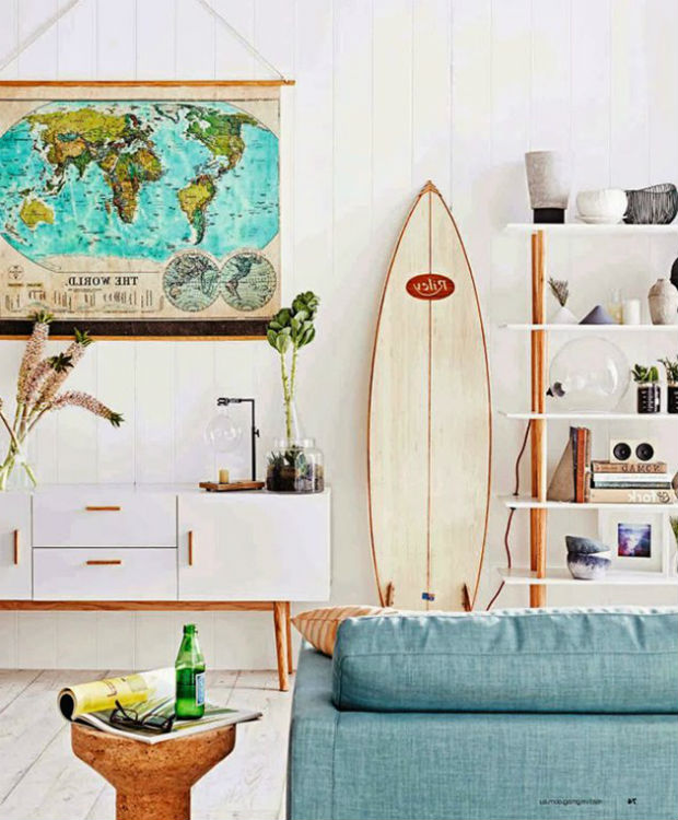 Морской декор в интерьере призван как-то разнообразить оформление домашних помещений, привнеся в них долю присутствия пляжа, солнца, отдыха. Такой декор будет актуален не только в летний период, но также осенью и весной. В принципе пляжный стиль может быть использован круглогодично, правда зимой все же многие любят украшать свои дома по-новогоднему – гирляндами, мишурой и прочими тематическими штучками. Итак, если Вы любите менять украшения интерьера, то выбирайте предметы, которые легко можно убрать и так же легко достать при необходимости. Ну а если желаете оформить дом, квартиру или комнату строго в едином морском стиле, то можете смело обращать внимание на более габаритные предметы, к которым можно отнести столы с ножками в виде морских коньков, плетеную мебель или массивные диваны обитые материалом с тематическим изображением. Ну об этом всем мы и поговорим далее в обзоре на нашем сайт «Уют в Доме», устраивайтесь удобнее, и приступайте к дальнейшему изучению этой статьи.