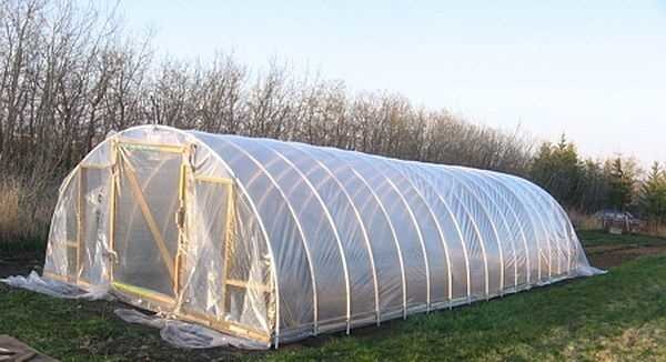 - ПВХ трубы с толщиной стенки не менее 2 мм. Длинна зависит от габаритов теплицы. Если строить собираетесь именно теплицу, то в верхней точке ее высота должна быть не менее 2,2 метра. Тогда вы сможете без труда работать внутри.